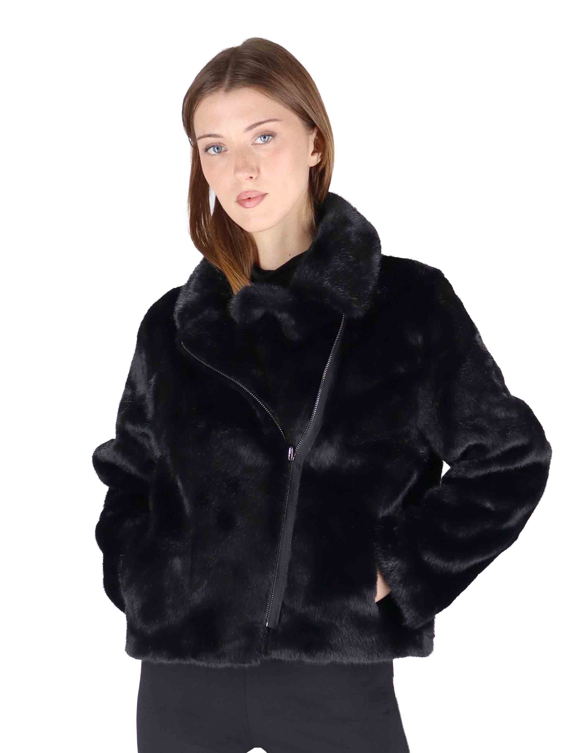 Bomber in eco fur nero con zip