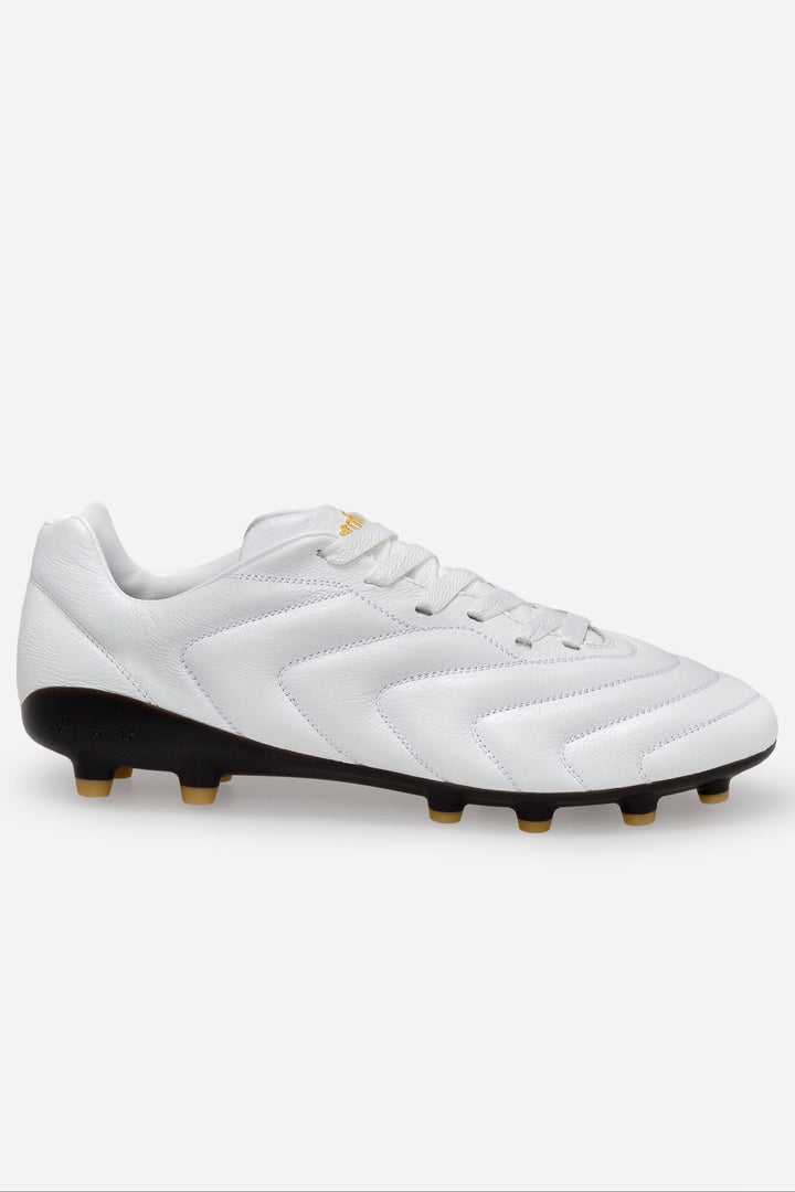 Pantofola d'Oro Superleggera 2.0 leather soccer cleats. It's natural to want to give your all on the pitch, and it can be a challenge to find a pair of soccer cleats that allow you to be fast, have excellent ball control, and feel comfortable at all times. Our Superleggera 2.0, made of leather, meets all these needs: it's the lightest soccer cleat we've ever created, weighing just 175 grams. The soft kangaroo leather upper offers flexibility, while the flat laces ensure optimal ball control. The Superleggera 2.0 is handcrafted using the same techniques we've used since Pantofola d'Oro was founded in 1886. When you wear this boot, you're not only seeking excellence, but you're also carrying over 130 years of Italian soccer history with you. Learn more at spatarella.eu