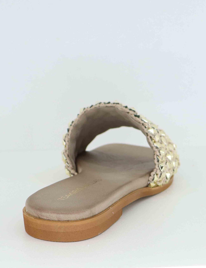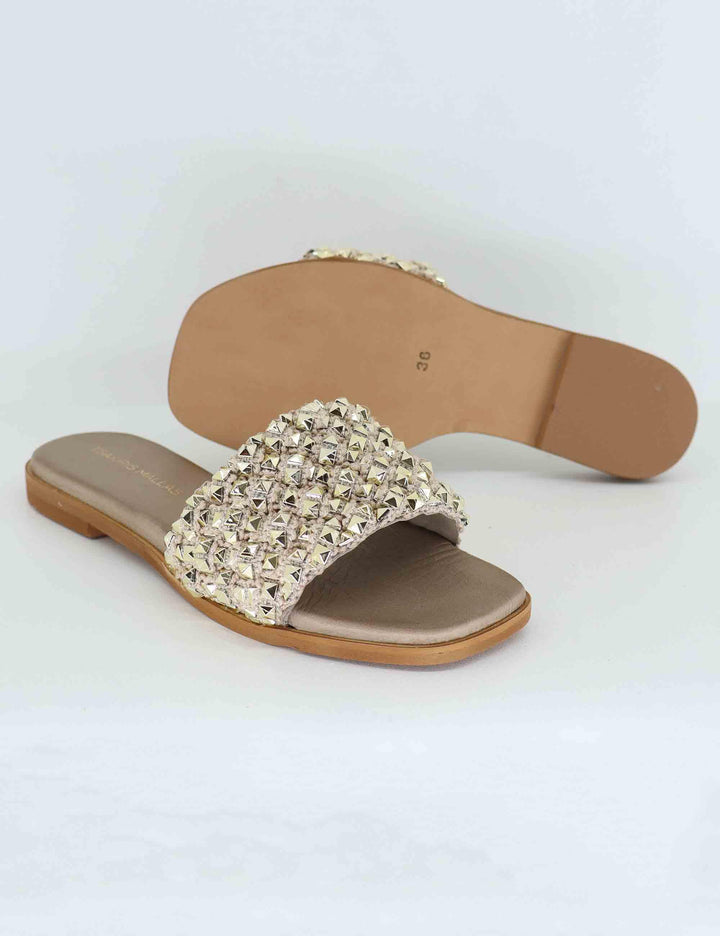 Women's flat sandals in gold fabric with gold studs Women U41009501121 950