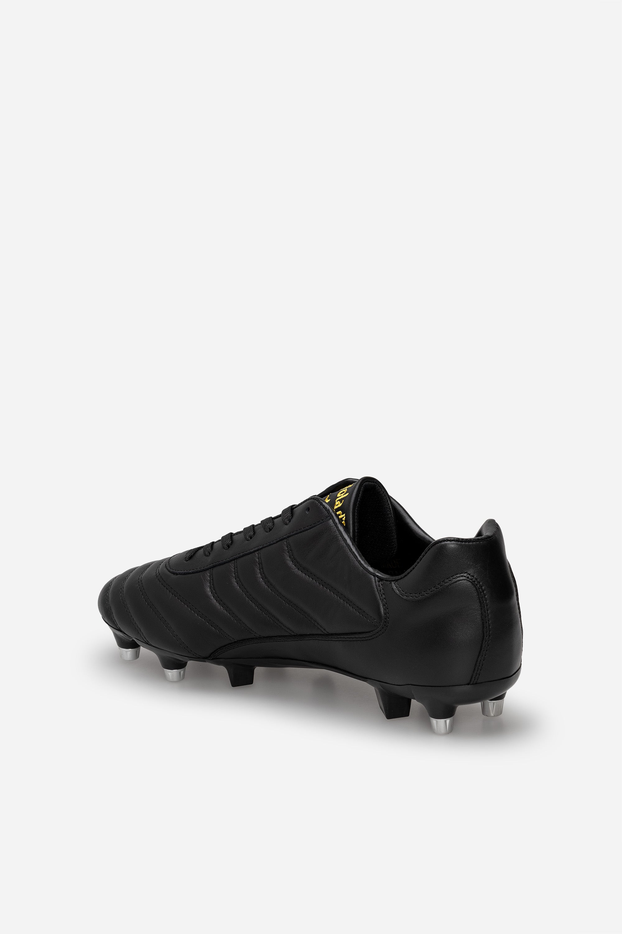 Chaussures de football Derby en cuir, signées Pantofola d'Oro. Élégance intemporelle avec une touche de classe. Notre modèle Derby est une véritable œuvre d'art, conçue pour les footballeurs qui souhaitent allier style et performance sur le terrain. Chaque couture classique sur le cuir raconte une histoire d'artisanat et d'attention aux détails, captivant le regard et confirmant l'authenticité du produit. Le cuir de veau de haute qualité de la tige garantit un confort absolu, tout en conservant sa forme impeccable au fil du temps. La sensation au contact du ballon est naturelle et réactive, grâce à la douceur du matériau et à la structure conçue pour améliorer le contrôle. Le modèle est cousu à la main avec précision, assurant une durabilité supérieure. Le avant-pied capitonné permet une flexibilité totale sur toute la surface du pied, offrant une liberté de mouvement et une précision maximale dans les changements de direction. Conçue pour exceller sur les terrains souples en gazon naturel, la Derby est le choix idéal pour ceux qui recherchent des performances élevées sans renoncer à l'élégance typique du Made in Italy. Découvrez Derby sur Spatarella.eu.