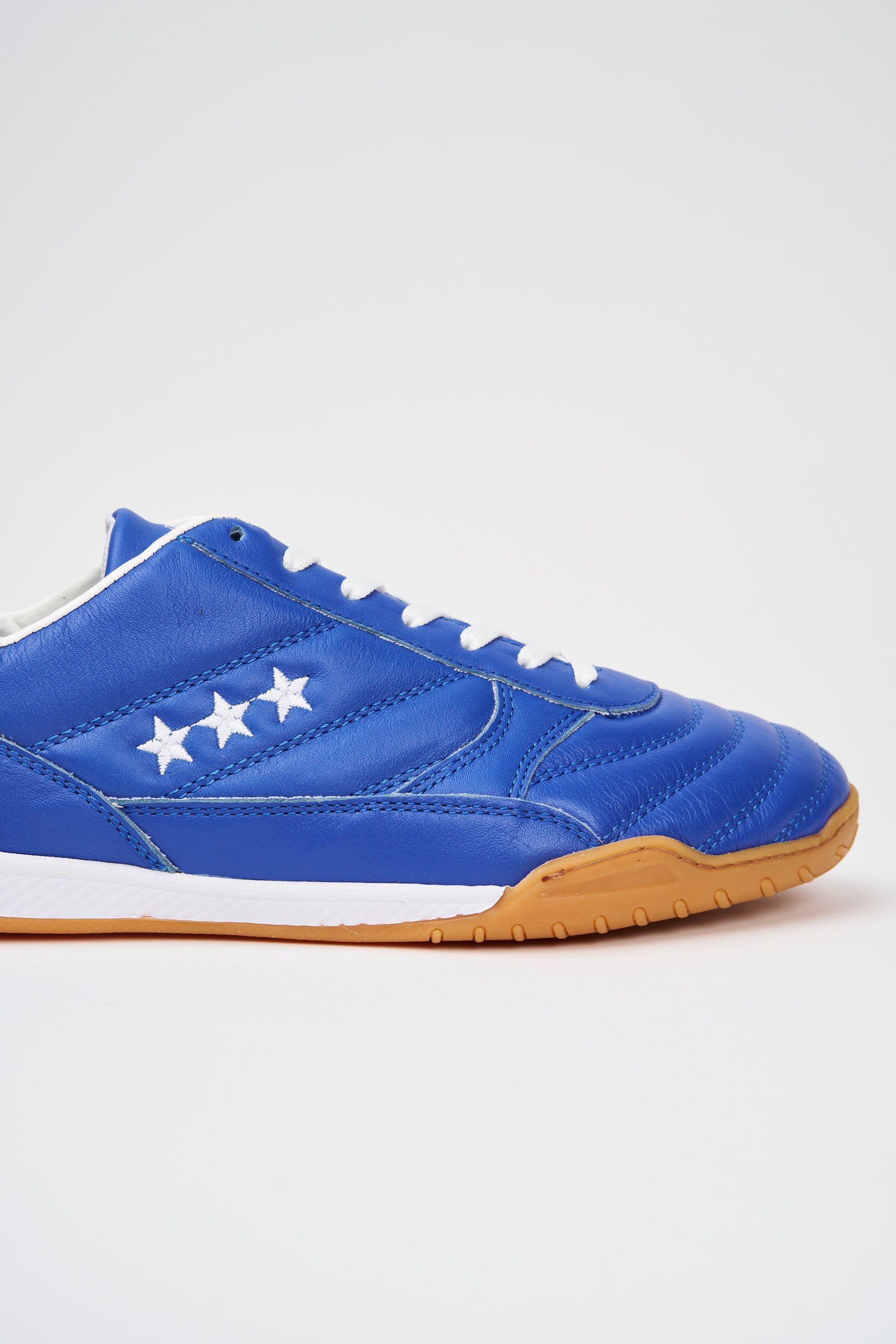 Chaussures de football d'intérieur Alloro en cuir bleu.
