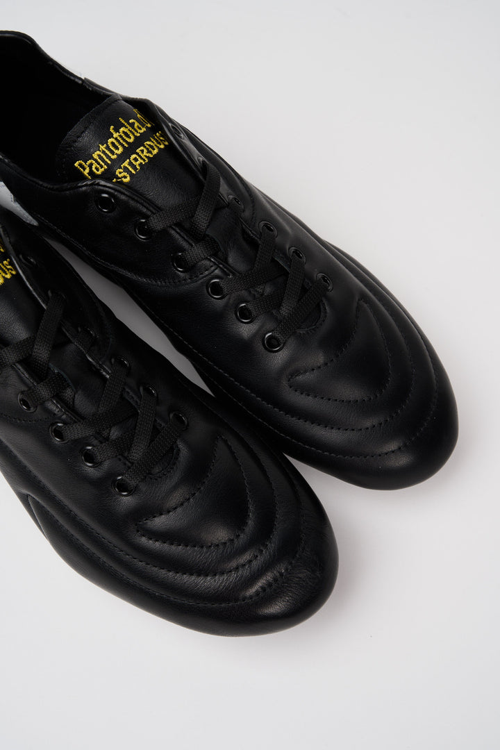 Chaussures de football Lazzarini Stardust signées Pantofola d'Oro, en cuir. Stardust. Les chaussures Stardust représentent l'équilibre parfait entre style et performance. Conçues pour offrir le maximum lors d'un jeu dynamique et agressif, ces chaussures sont réalisées en cuir de veau extrêmement doux, garantissant un confort optimal et une grande sensibilité dans le contrôle de balle. Les surpiqûres ondulées rehaussent le design élégant, tandis que les étoiles contrastées placées sur le talon confèrent une identité visuelle unique, symbole distinctif de la ligne. Les Stardust ne sont pas seulement des chaussures de football, mais une expression authentique de personnalité sur le terrain. Idéales pour ceux qui recherchent des performances élevées sur terrains compacts, elles garantissent agilité, adhérence et un style inimitable, le tout dans le signe de l'artisanat italien. Achetez maintenant sur Spatarella.eu et laissez votre empreinte avec les Stardust – où le jeu rencontre le style.