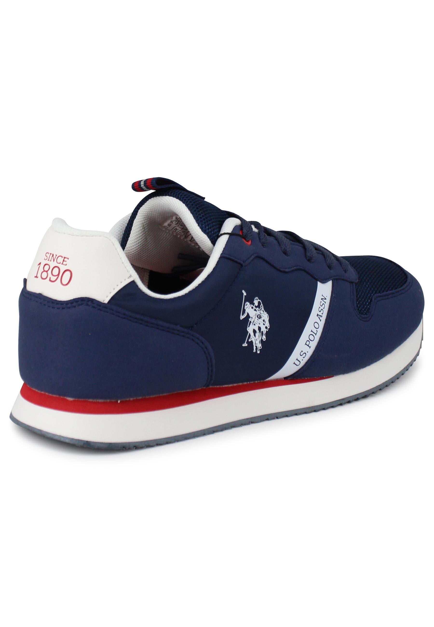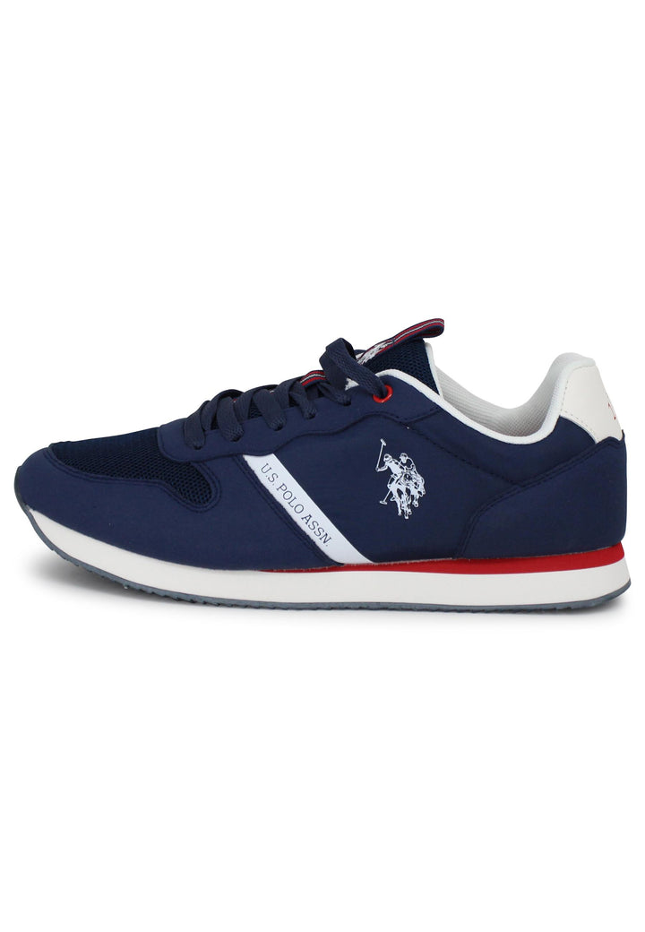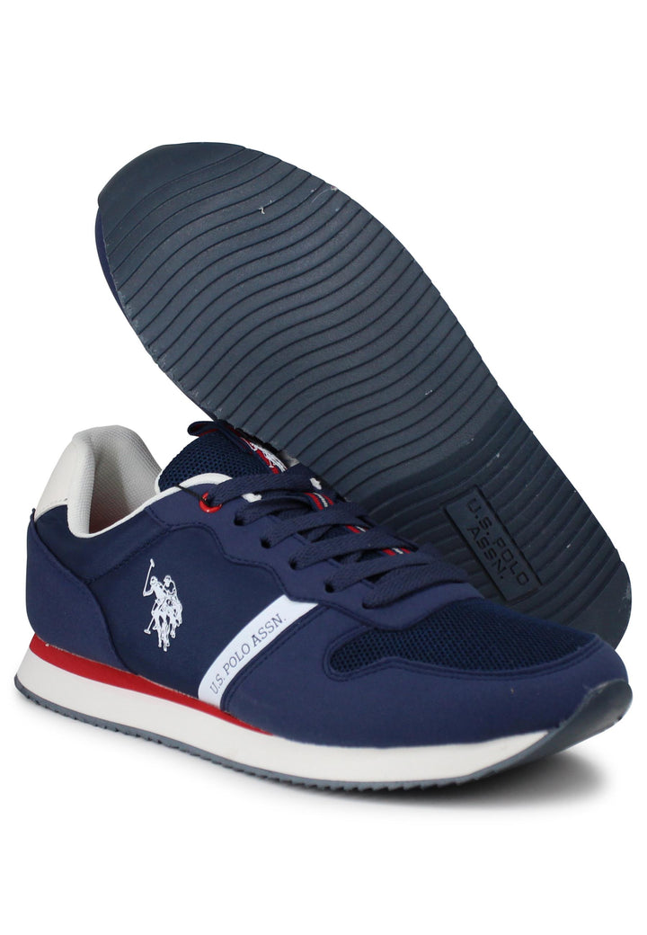 Baskets pour hommes Nobil conçues par US Polo Assn. réalisé dans un mélange de tissu technique et de suède écologique bleu. Semelle intérieure souple. Logo latéral avec écriture et semelle légère en caoutchouc. Composition et détails : Matériau extérieur : tissu. Doublure : tissu. Matériau de la semelle : caoutchouc. Hauteur du talon : 2 cm. Coupe : régulière
