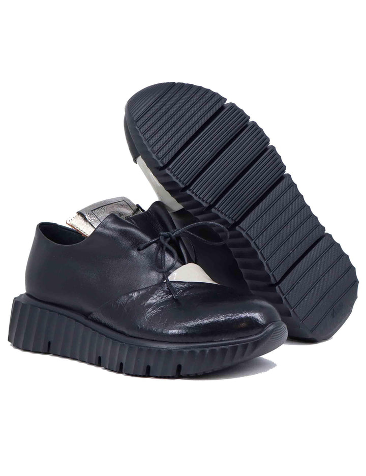 Sneakers donna in pelle nera con riporti in vernice Donna SUN03-A 001