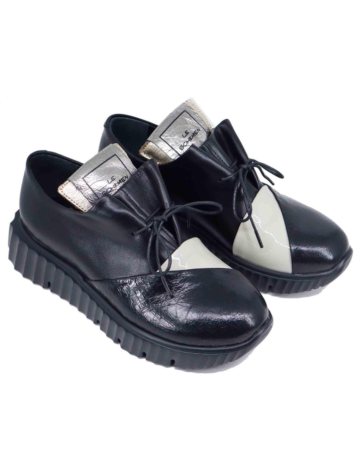 Sneakers da donna firmate Le Bohemien le in pelle nera con riporti in vernice. Queste sneakers in pelle, caratterizzate da riporti in vernice sia tono su tono che a contrasto, offrono uno stile contemporaneo e dinamico. La zeppa bassa in gomma assicura comfort e praticità per tutto il giorno, rendendole ideali per una varietà di attività quotidiane. Realizzate in Italia, queste sneakers sono un perfetto equilibrio tra funzionalità e moda, ideali per chi cerca un look sportivo senza rinunciare all'eleganza.