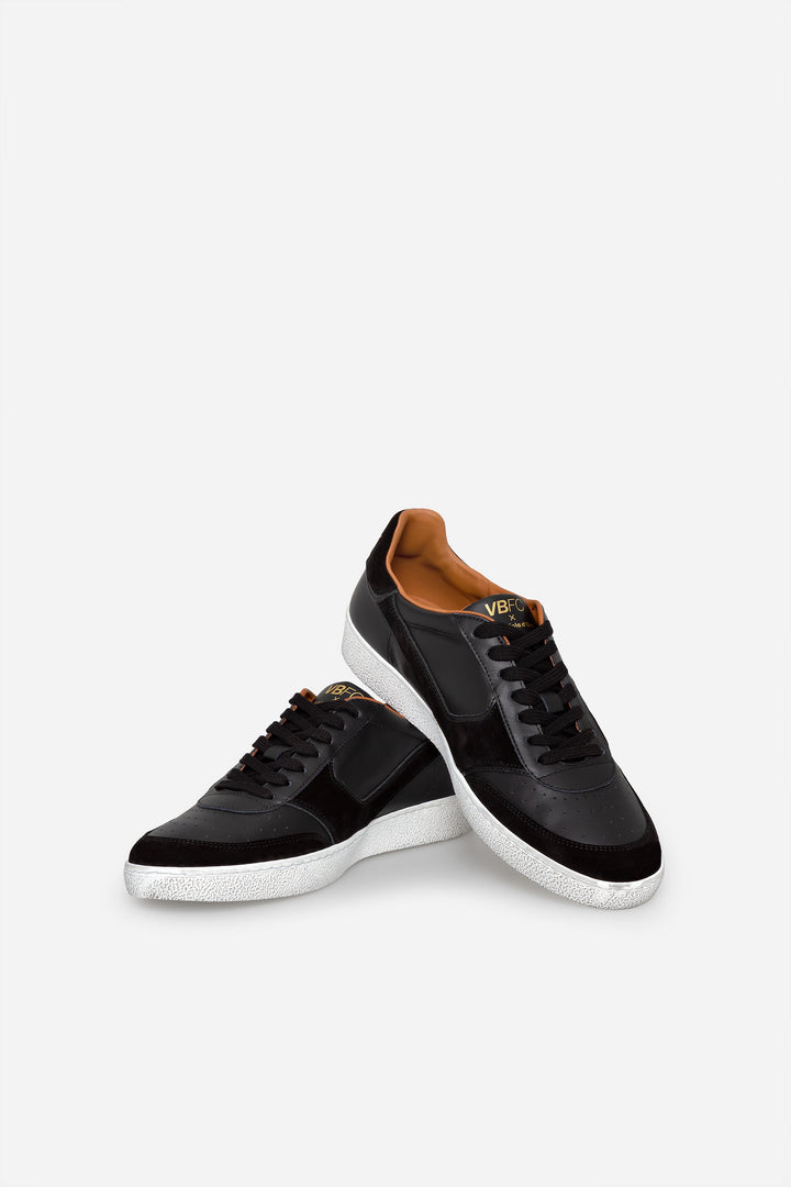 CARATTERISTICHE Stile retrò da scarpa da calcio anni '70 reinterpretato in chiave moderna Tomaia in pelle nera (vitello) di alta qualità Sovrapposizioni laterali angolari Suola in gomma per aderenza e comfort Chiusura con lacci Design firmato in collaborazione con Venice Beach FC Prodotto artigianalmente in Italia