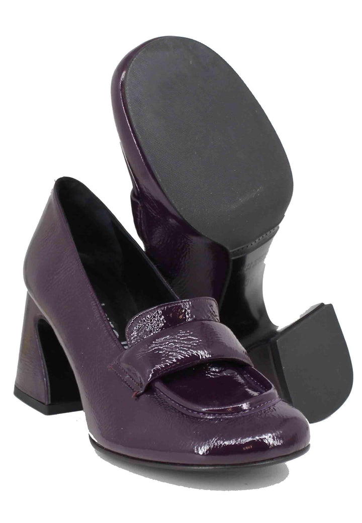 Mocassini donna in vernice viola con tacco alto e punta tonda Donna SP784 037