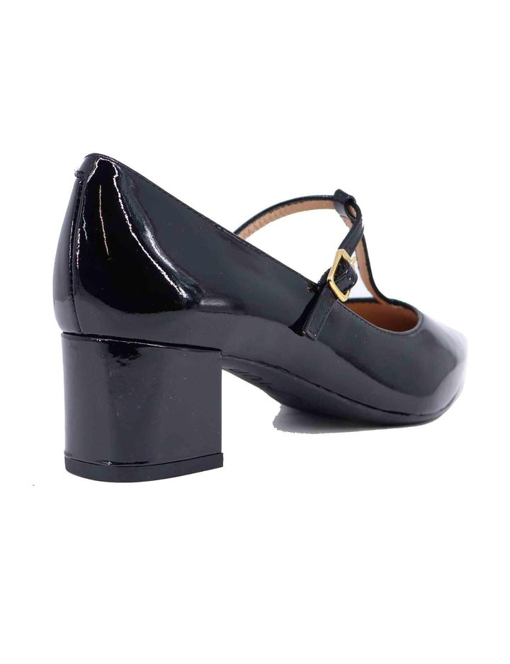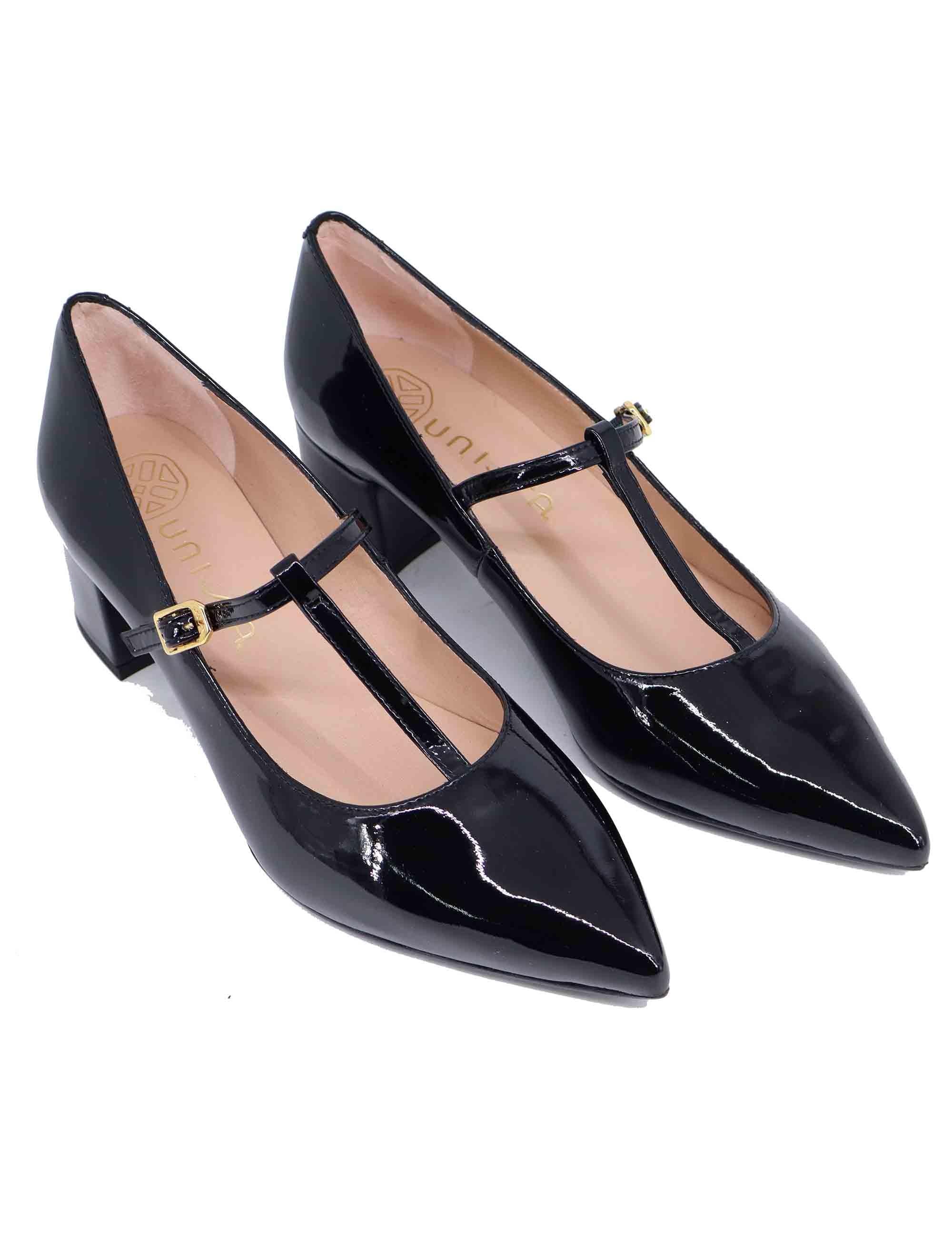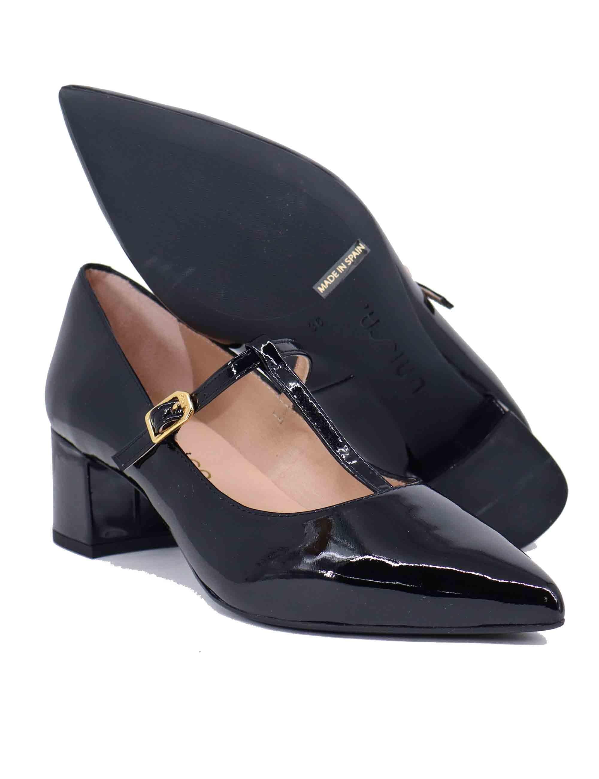 Decollete da donna firmate Unisa realizzate in vernice nera con punta a punta. Queste Mary Jane presentano un design elegante e raffinato, perfette per completare un outfit chic. La fibbia dorata aggiunge un tocco di classe, mentre il cinturino sul collo del piede garantisce una calzata sicura. Il tacco, fasciato in vernice tono su tono, offre un'altezza ideale per il comfort senza sacrificare lo stile. Queste scarpe sono state realizzate in Spagna, con attenzione alla qualità e al design. Ideali per chi cerca una calzatura distinta e versatile.